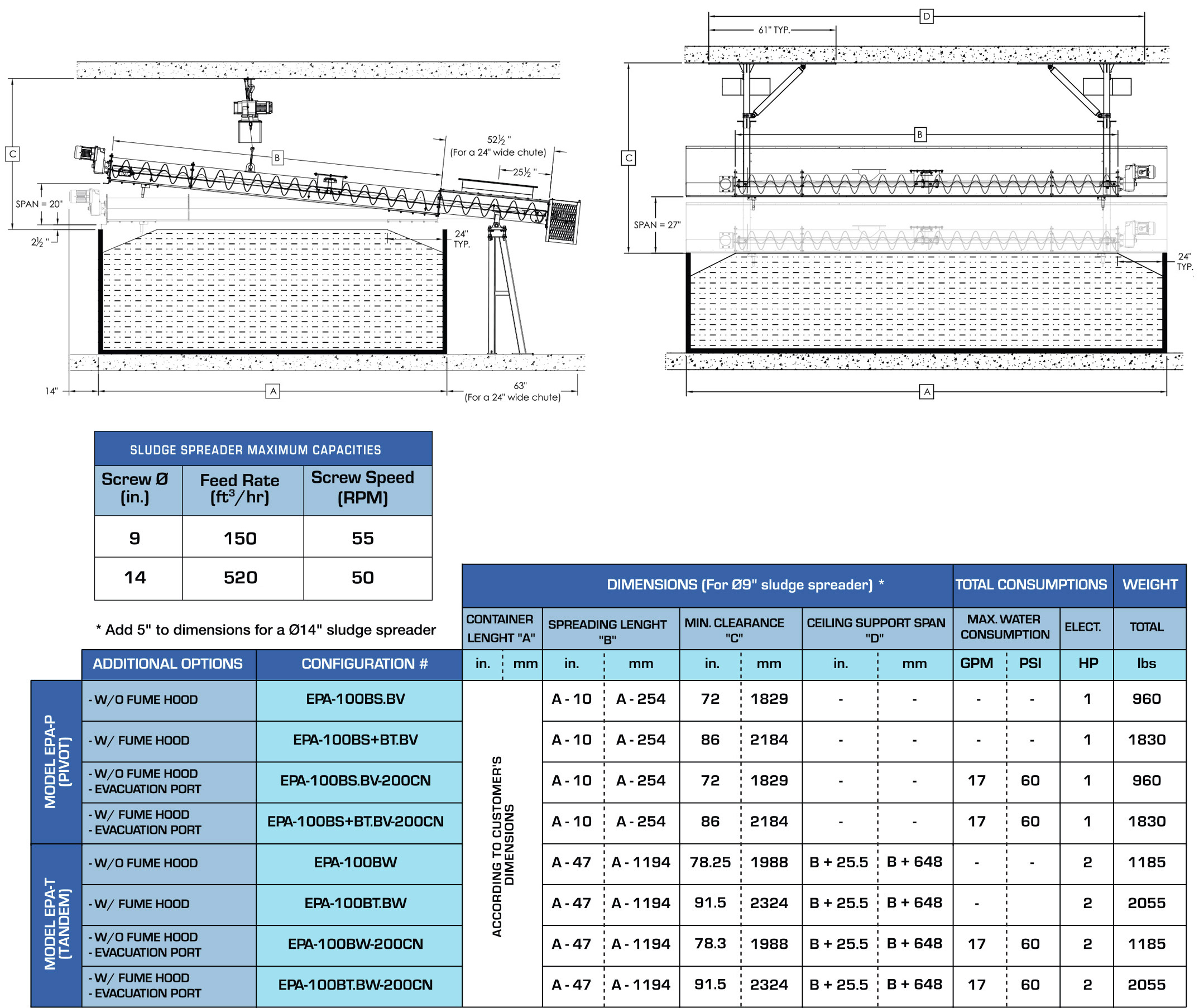 Con-V-Air has worked closely with water treatment facilities to determine the needs and concerns of the industry. One such concern is the safe filling of sludge bins. Typically operators are required to rake the sludge in the bins to maximize the utilizable space.