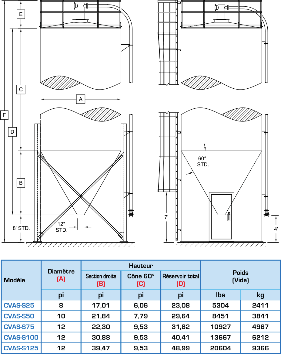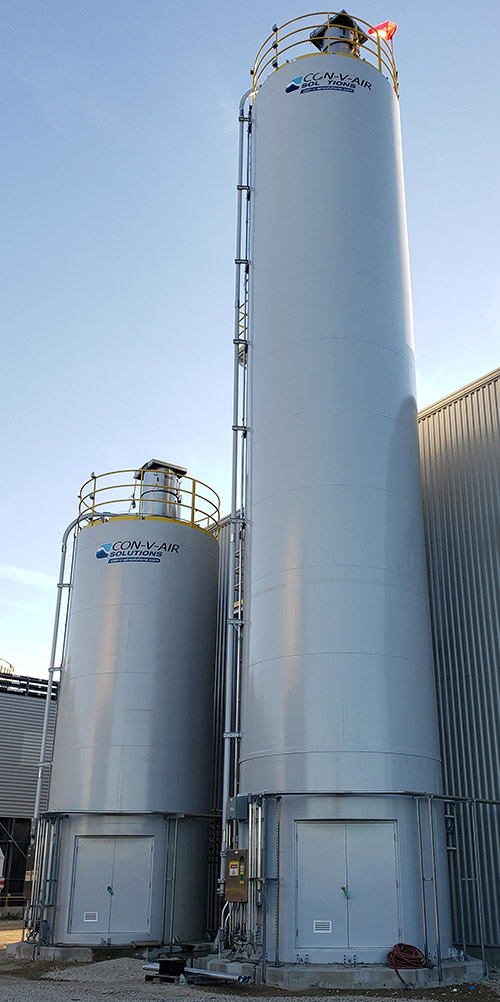 Avec plus de 37 ans d'expérience dans la conception et la fabrication de silos, CON-V-AIR et CAMFAB forment une synergie qui allie ingénierie, conception et fabrication pour des applications standards ou sur mesure. Sa construction robuste rend notre silo durable et solide pendant le transport, l'installation et le fonctionnement. Les systèmes d'entreposage de CON-V-AIR sont optimisés pour une capacité de stockage maximale sur site tout en minimisant l'espace requis. La conception CON-V-AIR propose des silos soudés et boulonnés qui peuvent être livrés équipés d'accessoires de taille appropriée tels que des systèmes d'activation de produit et de dépoussièrage.